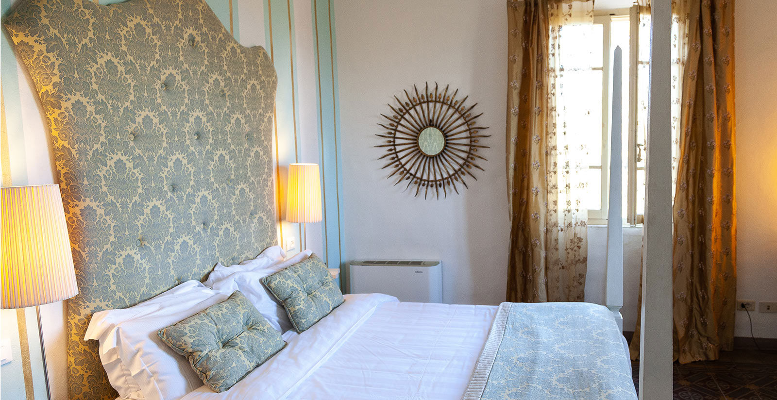 In the main house on the first and second floors with double aspect views over the valley. Accommodation consists of a en suite bathroom with double basins, bath / shower, air-conditioning, music box and WiFi and The hotel application for local recommendations.